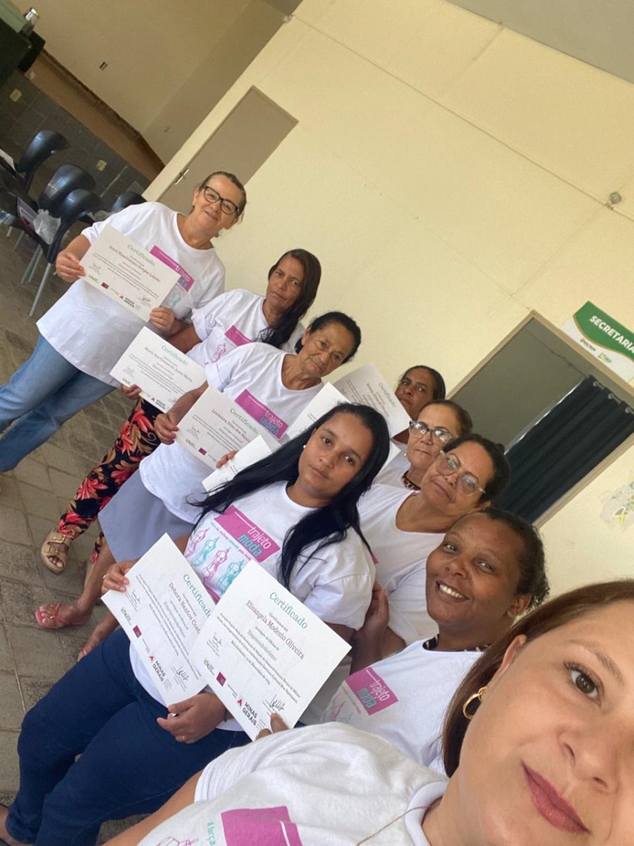 A célula colaborativa do Projeto Trajeto Moda em Mata Verde/MG foi iniciada em agosto de 2024, marcando o início do Módulo II sob a gestão do Instituto Cultural Boa Esperança (ICBE). Localizada na Avenida Almenara, nº 71, no Bairro Planalto, em um espaço cedido pela Prefeitura, a célula reúne 10 mulheres que compartilham responsabilidades de forma democrática, promovendo um ambiente colaborativo e produtivo. O espaço estratégico facilita o acesso das participantes e a realização das atividades do grupo.