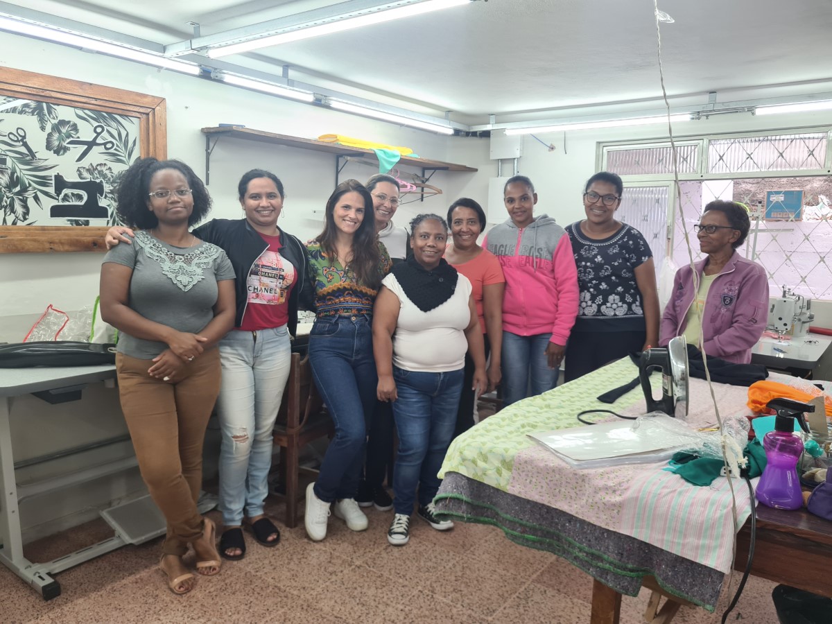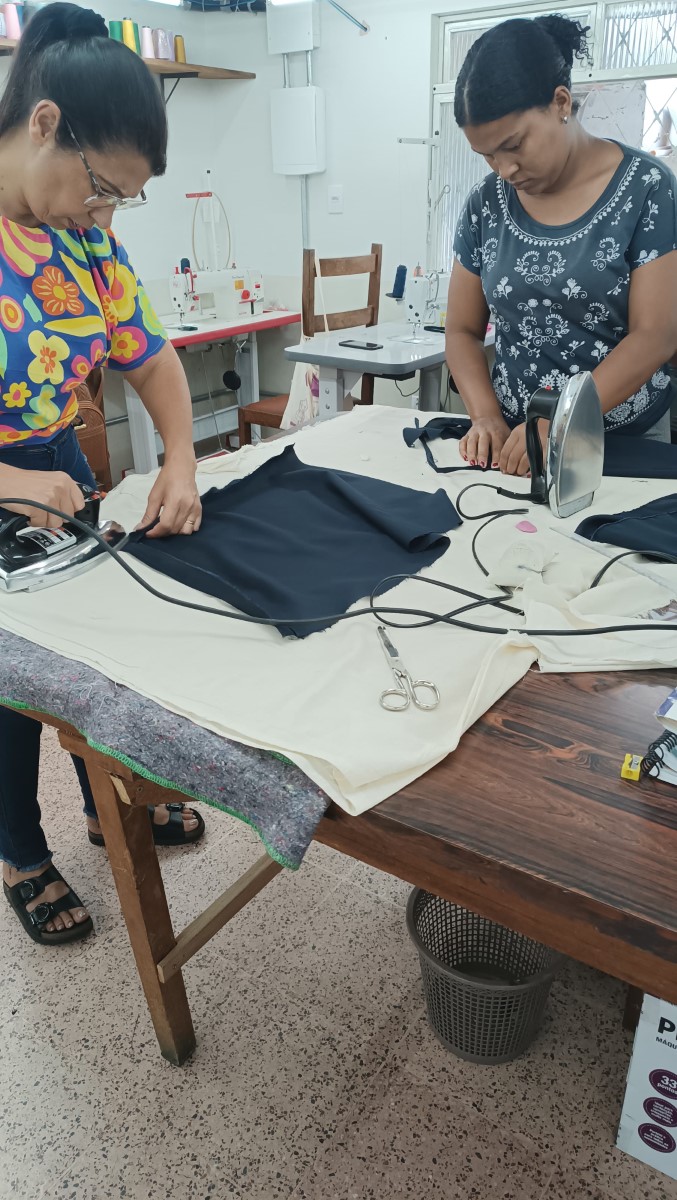 O segmento principal da célula é a Moda Feminina, com destaque para a moda afro, além de produções em moda infantil. As participantes expõem e vendem suas criações em feiras municipais, que são momentos importantes para a visibilidade do projeto. Paralelamente, algumas beneficiárias realizam pequenos reparos em casa, gerando renda de forma individual. O valor arrecadado com os trabalhos coletivos é dividido igualmente entre as participantes, reforçando o modelo colaborativo.