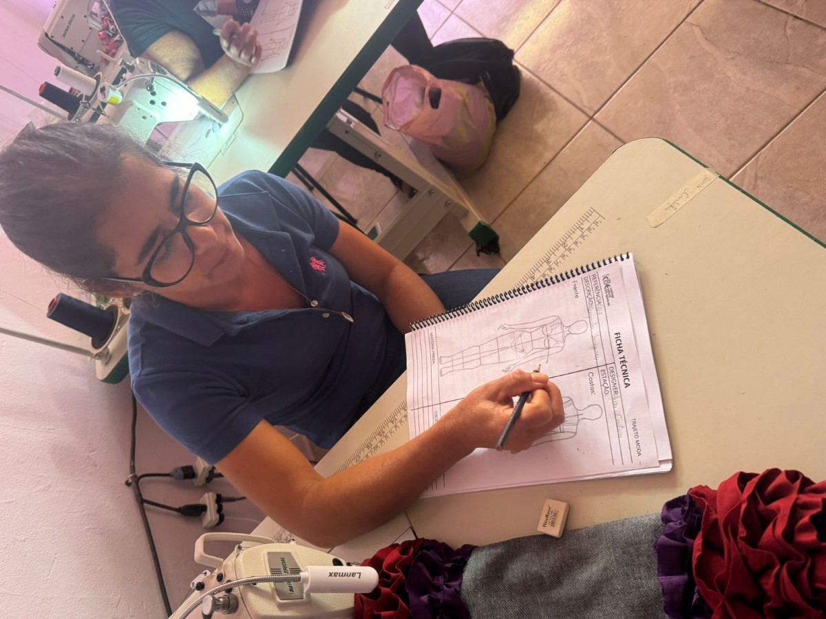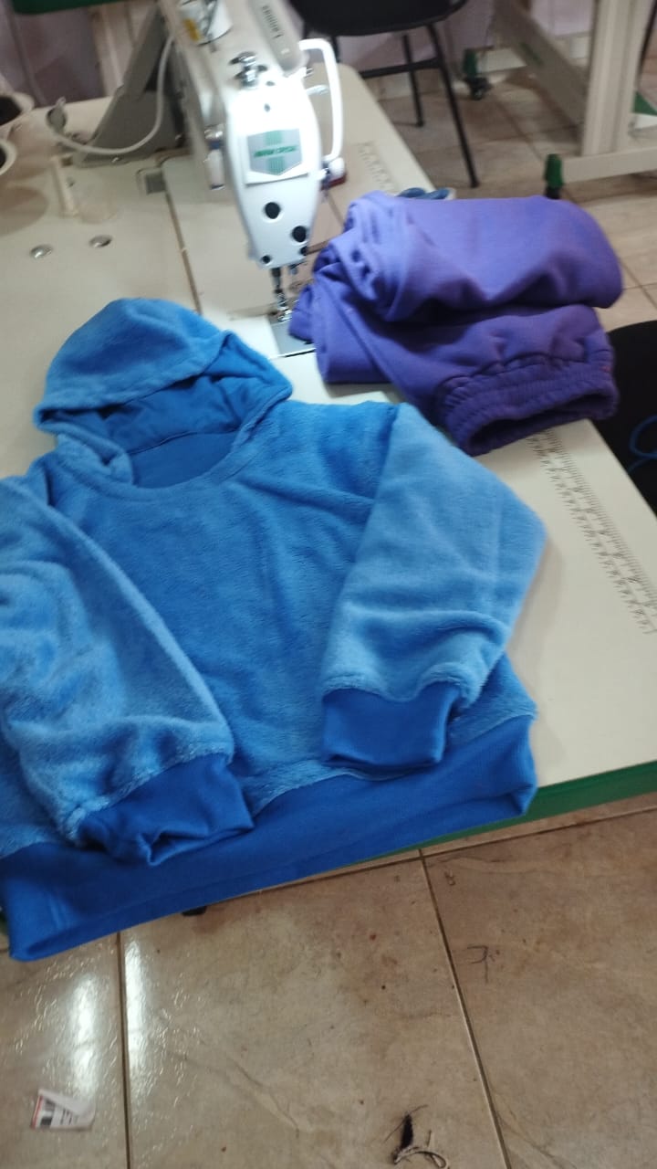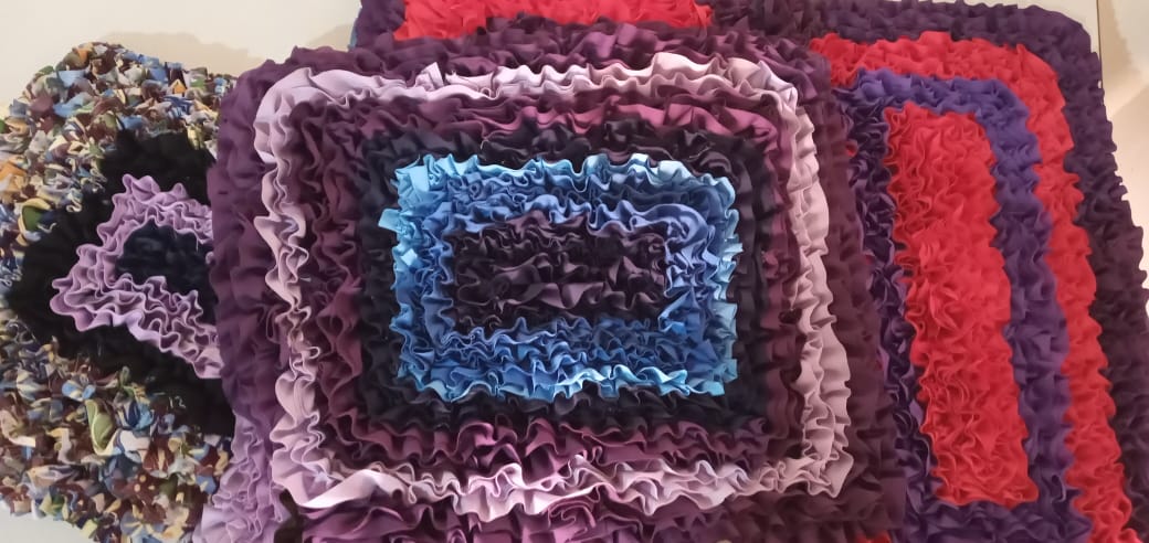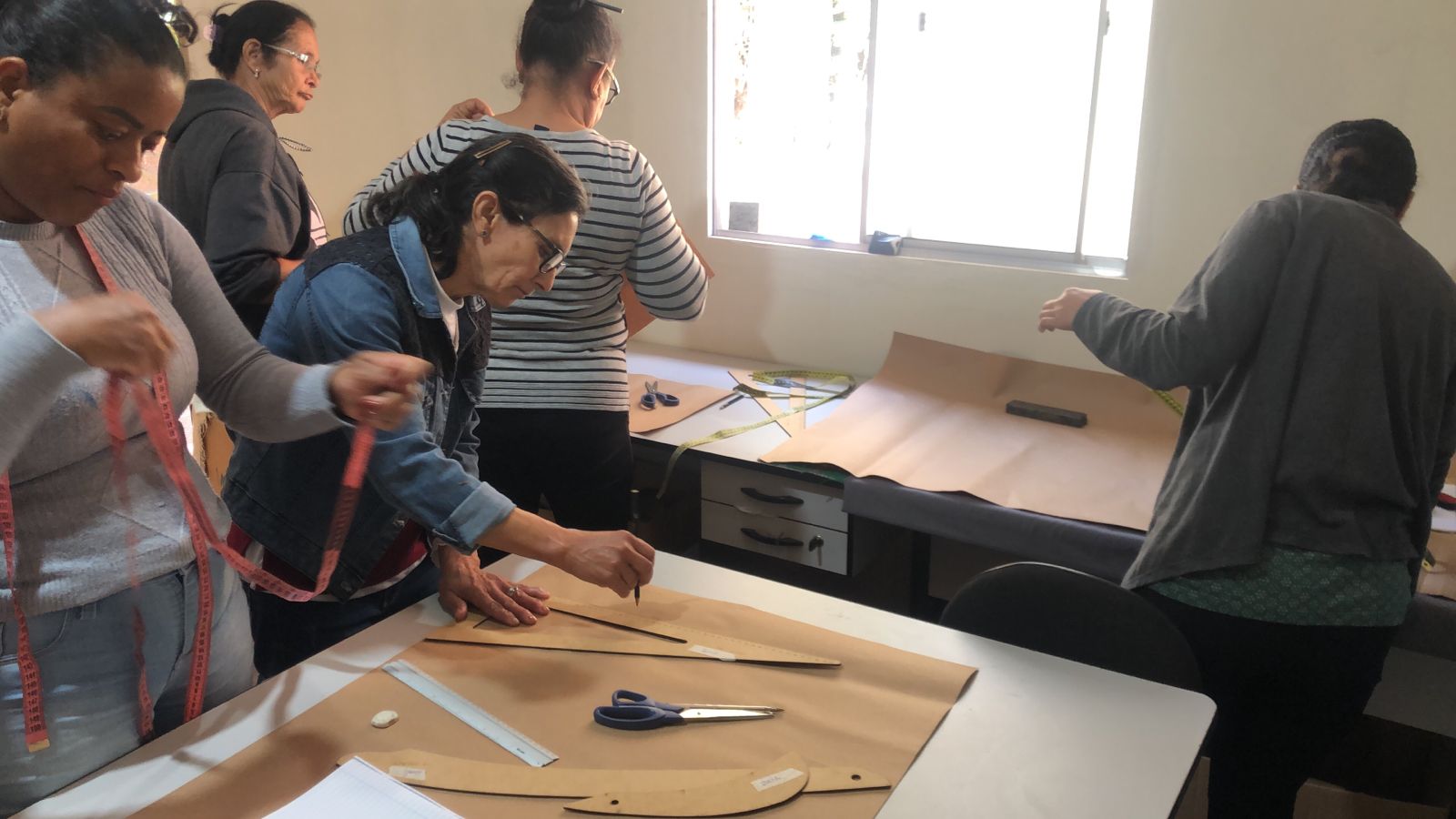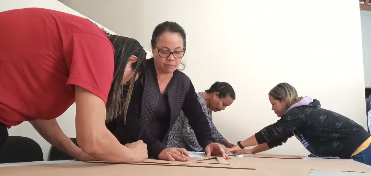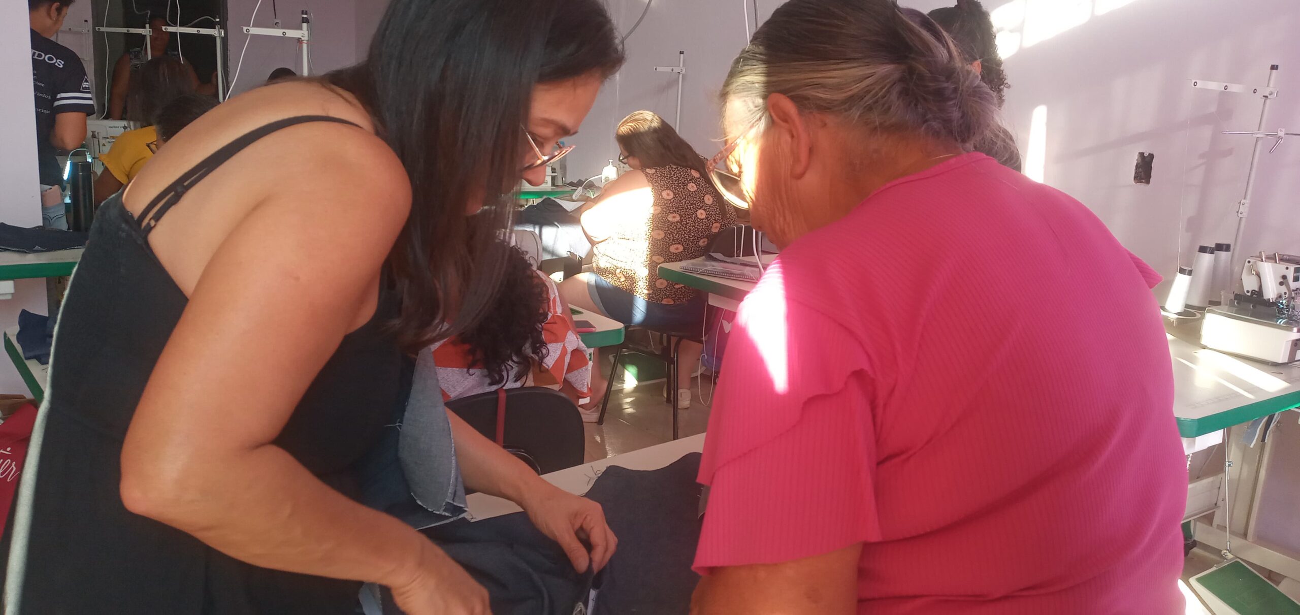 O segmento principal da célula é a produção de uniformes, atendendo a demandas locais. Além disso, o grupo realiza ajustes, confecção de peças femininas, moda casa (como fronhas e lençóis) e tapetes de retalhos de malha. A produção de tapetes é direcionada para venda nas Feiras da Agricultura Familiar, enquanto os serviços de ajustes e customização (upcycling) são realizados tanto coletivamente quanto de forma individual pelas beneficiárias. A divisão dos lucros é feita por trabalho, e a compra de insumos é organizada de forma coletiva.