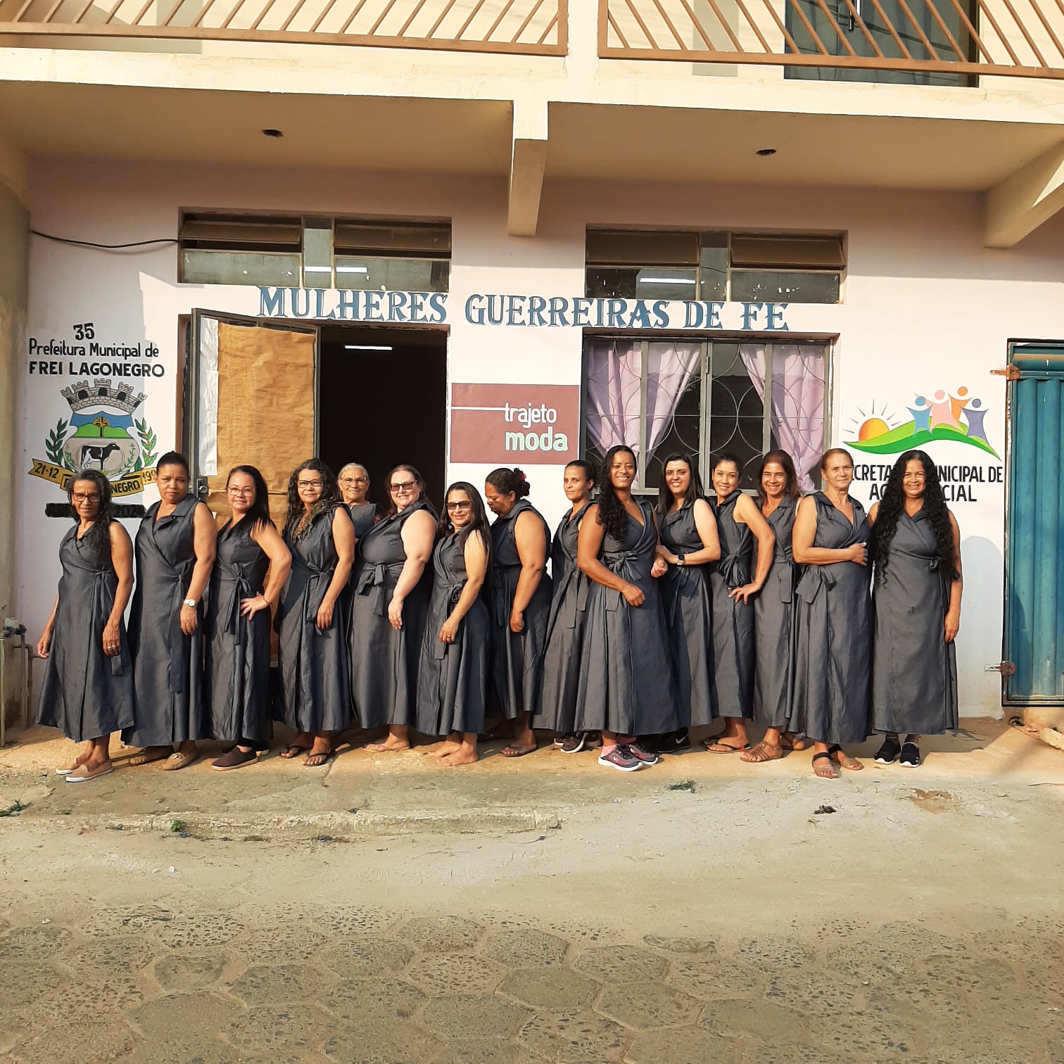 A célula colaborativa do Projeto Trajeto Moda em Frei Lagonegro/MG, chamada Ateliê Bonsucesso, foi iniciada em abril de 2024 como parte do Módulo II do projeto, sob a gestão do Instituto Cultural Boa Esperança (ICBE). Localizada na Rua Dona Luzia Patrocínio, no Centro da cidade, a célula reúne 14 mulheres que frequentam o espaço diariamente, de segunda a sexta-feira, das 12h30 às 16h30. O grupo trabalha de forma colaborativa, fortalecendo sua identidade profissional e promovendo a autonomia das participantes.