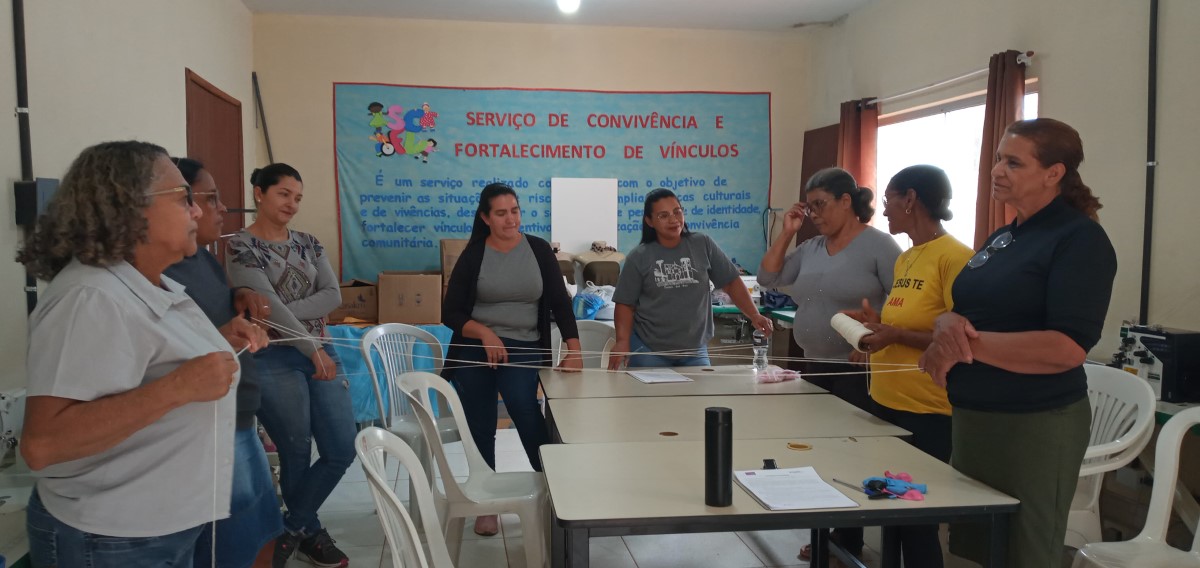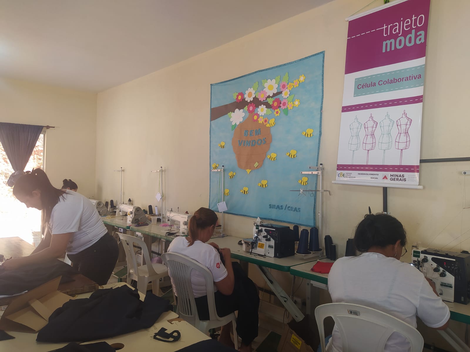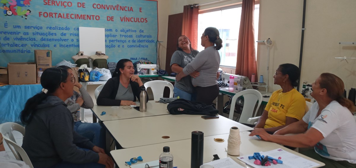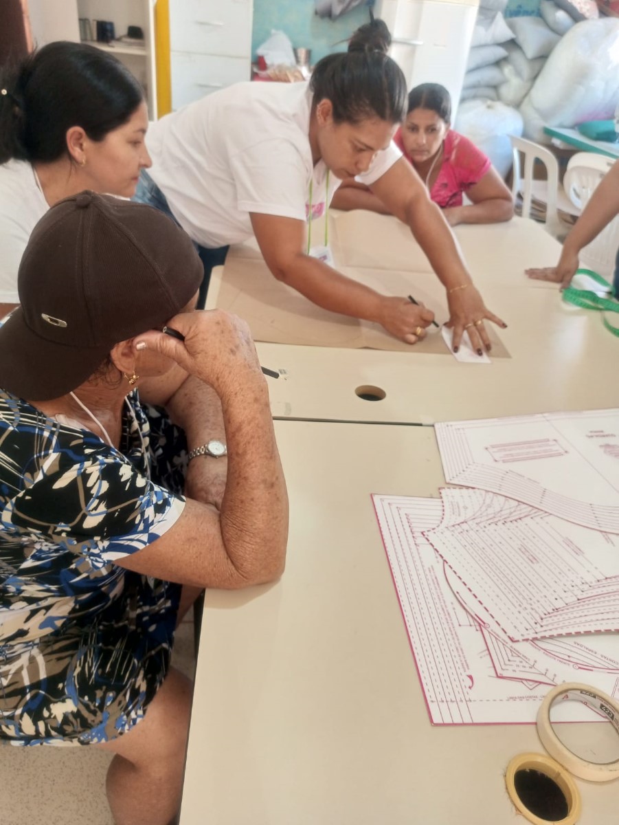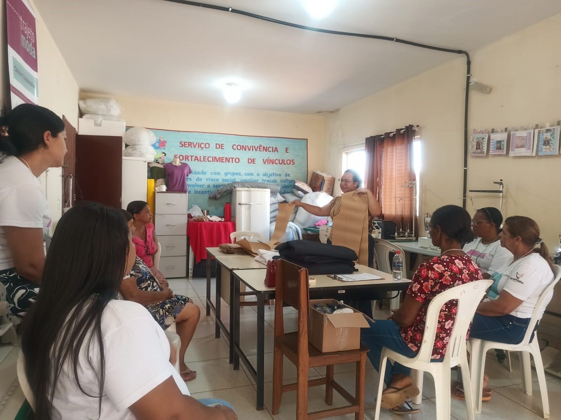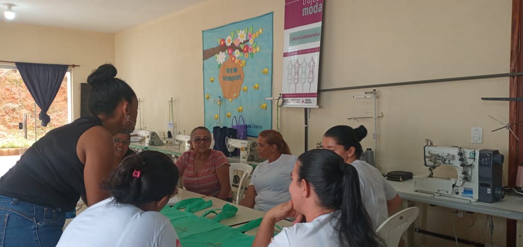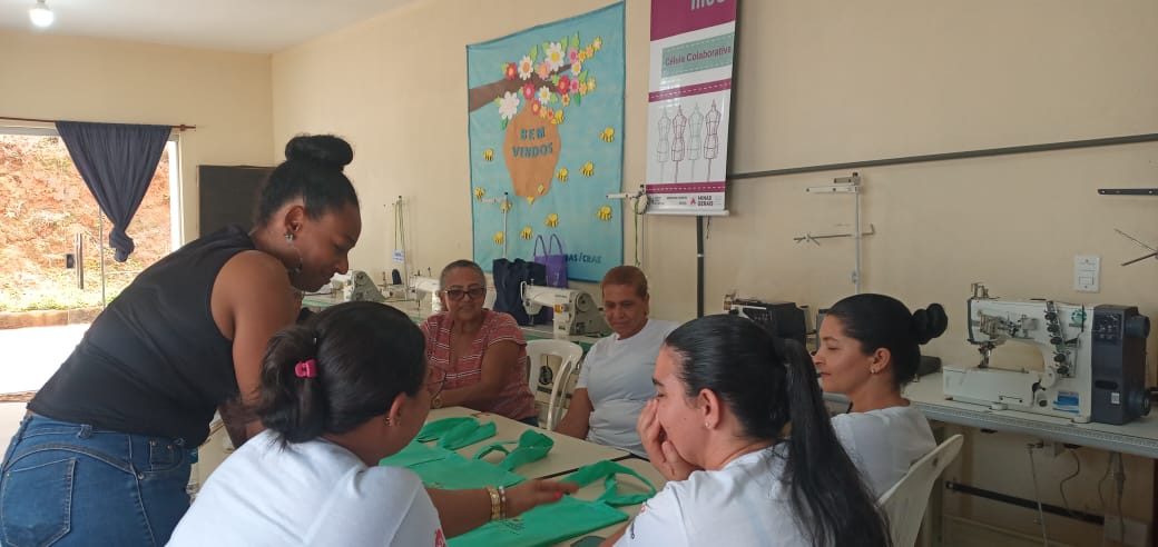 A célula colaborativa do Projeto Trajeto Moda em Rio Vermelho/MG foi iniciada em julho de 2024, com o Módulo II sendo executado no anexo do Centro Intersetorial de Atenção à Pessoa Idosa, localizado na Rua José Faustino Silva, nº 33, no Centro da cidade. Composta por nove mulheres, a célula se organiza sob o nome “Ateliê Costurando Sonhos”, refletindo a união e aspirações do grupo. As atividades acontecem de segunda a sexta-feira, das 13h às 17h, em um ambiente acolhedor que promove aprendizado, convivência e desenvolvimento profissional.