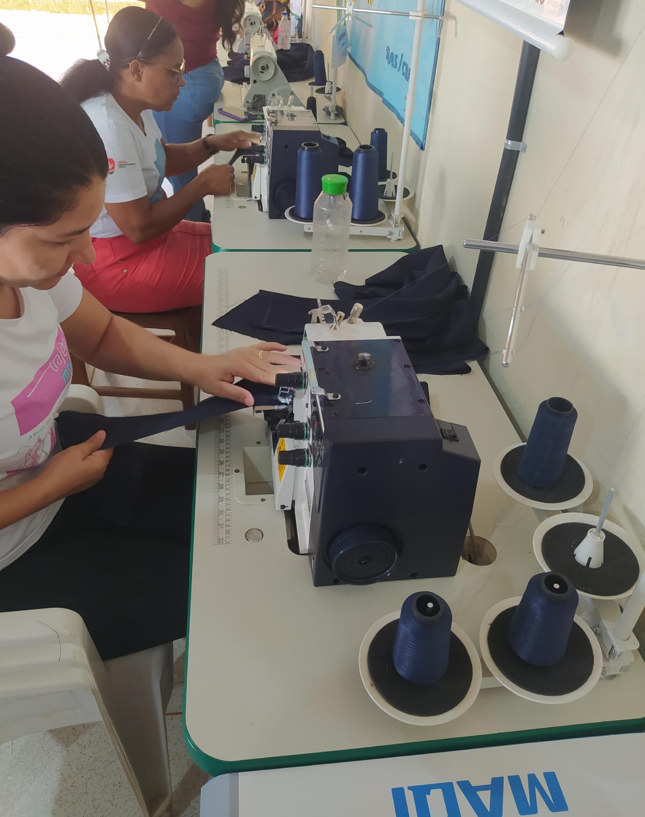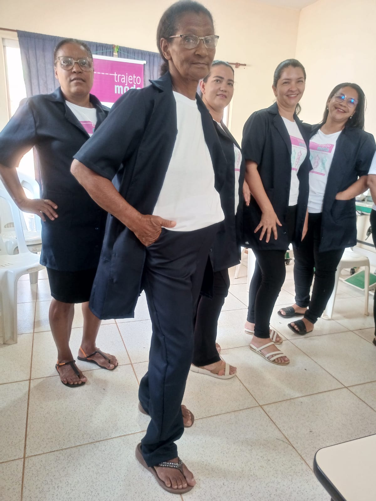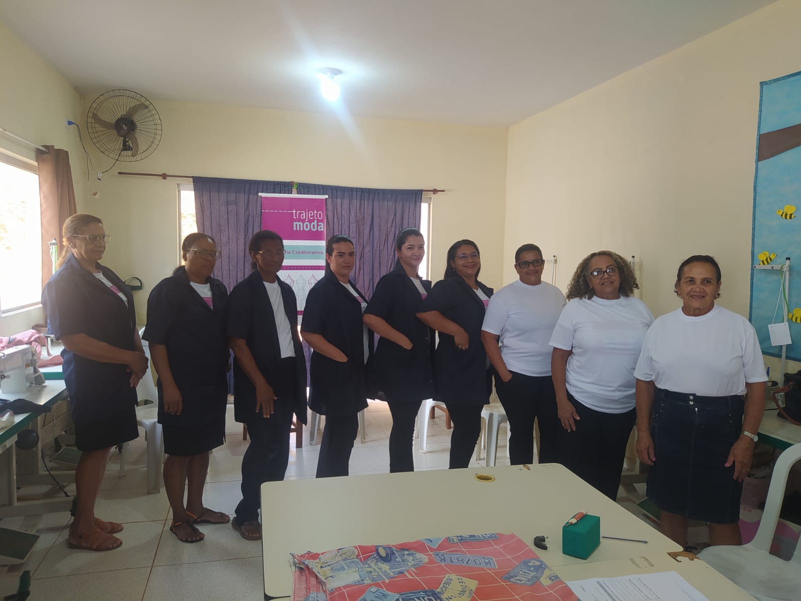 O segmento de moda escolhido pelo grupo é a confecção de uniformes, com foco em atender demandas de órgãos públicos. Além disso, o grupo demonstra versatilidade ao realizar ajustes e confeccionar peças femininas e masculinas. Trabalhando de forma individual e coletiva, as participantes já atenderam grandes encomendas, como os uniformes da Secretaria Municipal de Assistência Social e os trajes da Banda Mirim. O lucro das produções coletivas é dividido igualmente, promovendo colaboração e equidade.