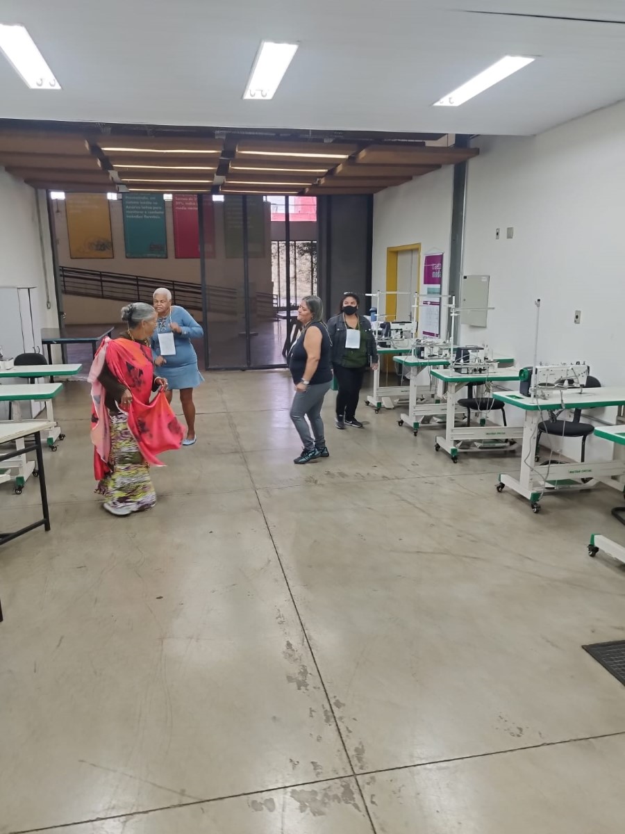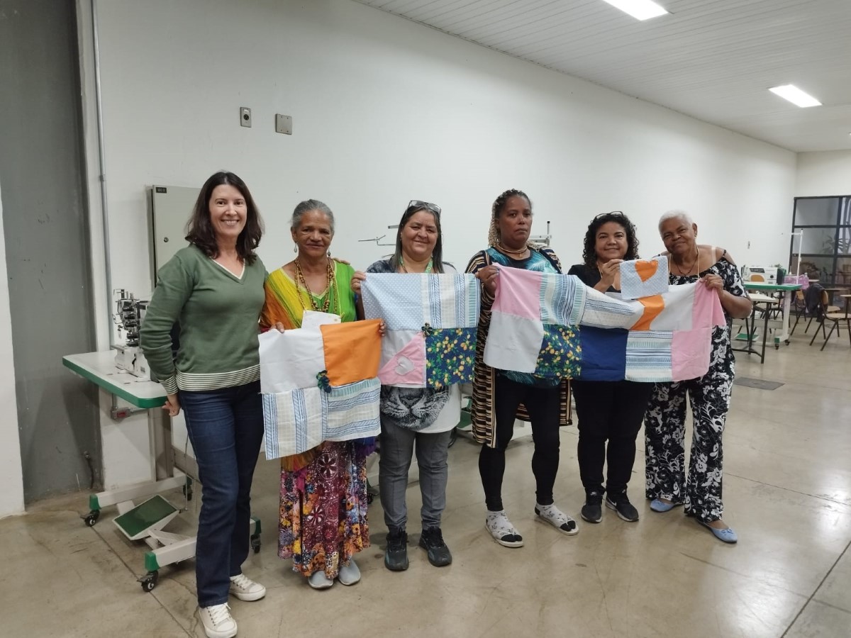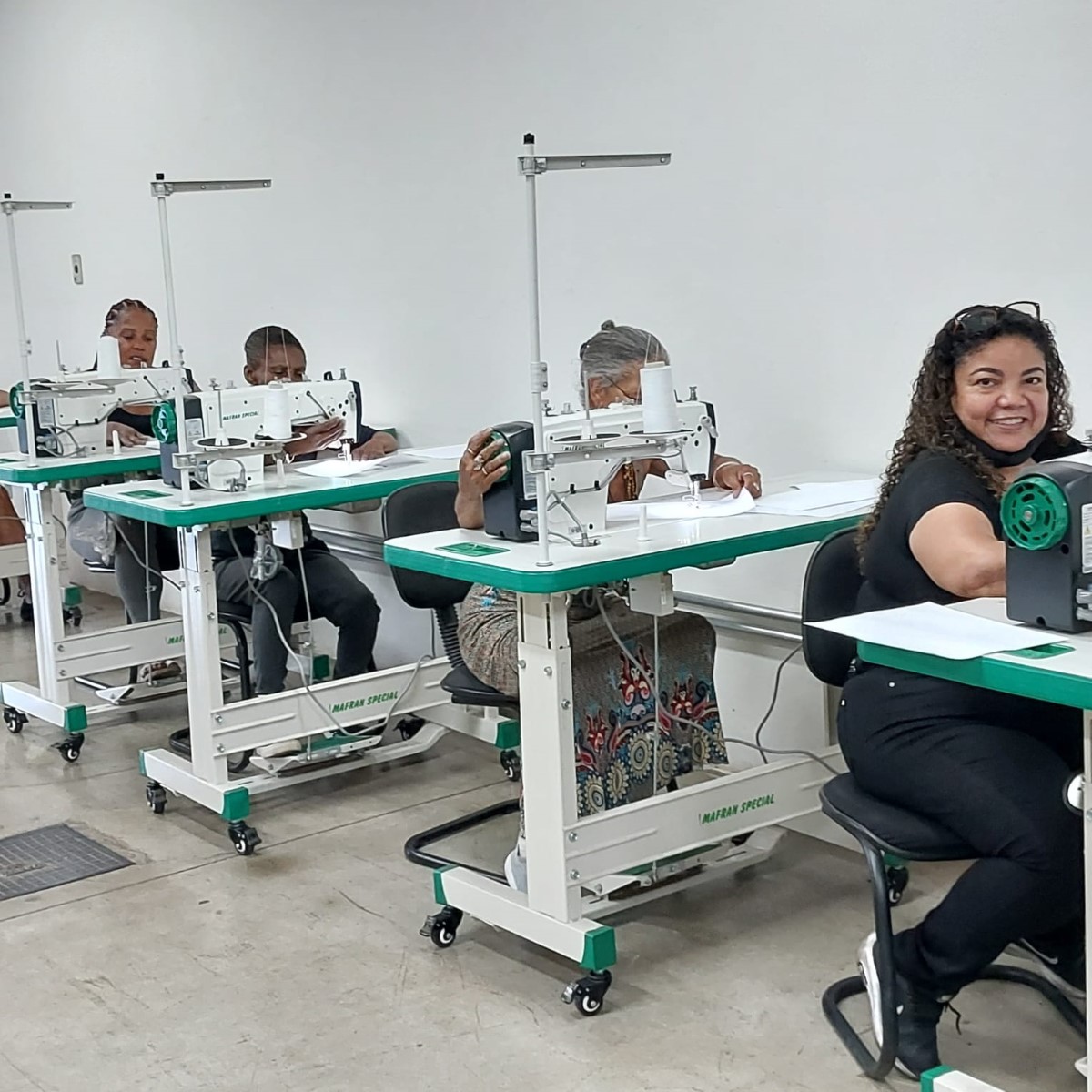 A célula colaborativa conta com 11 beneficiárias. E no momento elas estão recebendo a Capacitação no Ofício da Costura, que teve início em maio de 2025, as mesmas frequentam o espaço exclusivamente em dias de capacitação. Antes que acontecesse a capacitação, elas tiveram a oficina de Inteligência Emocional.
