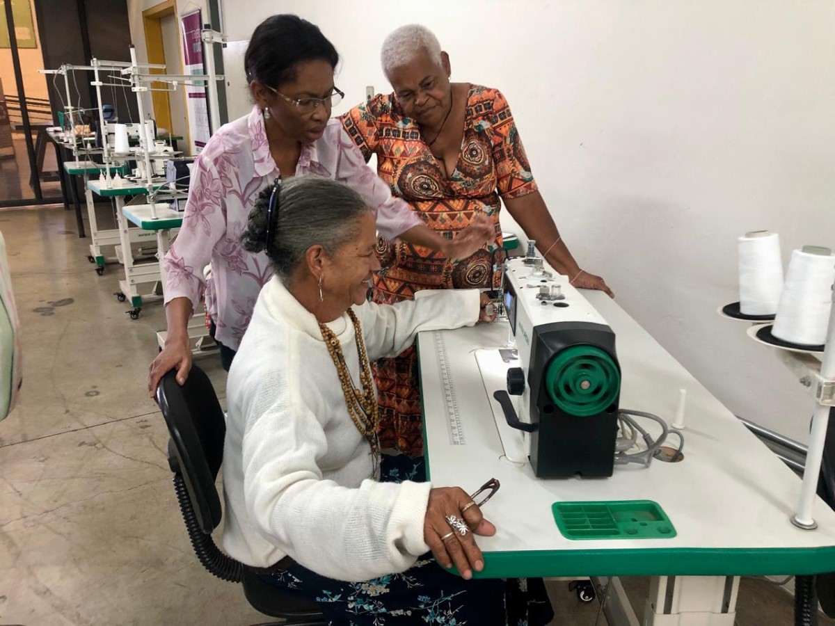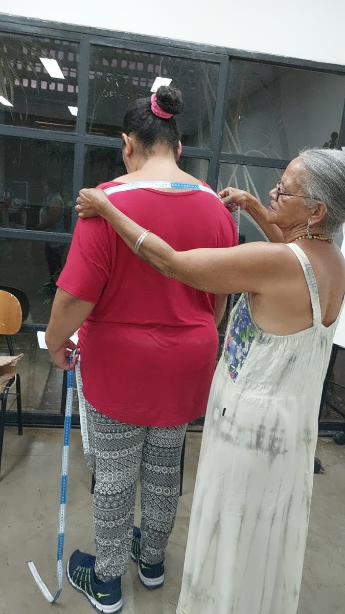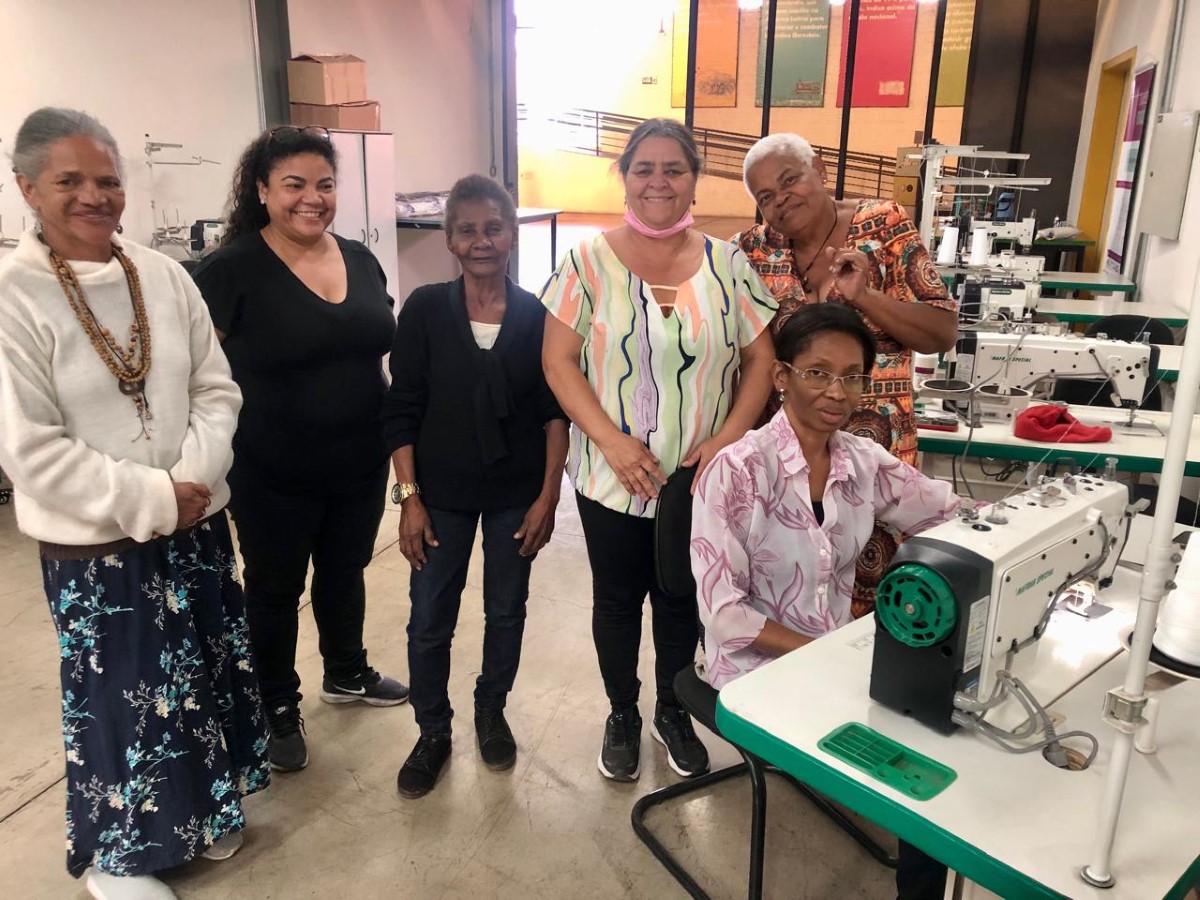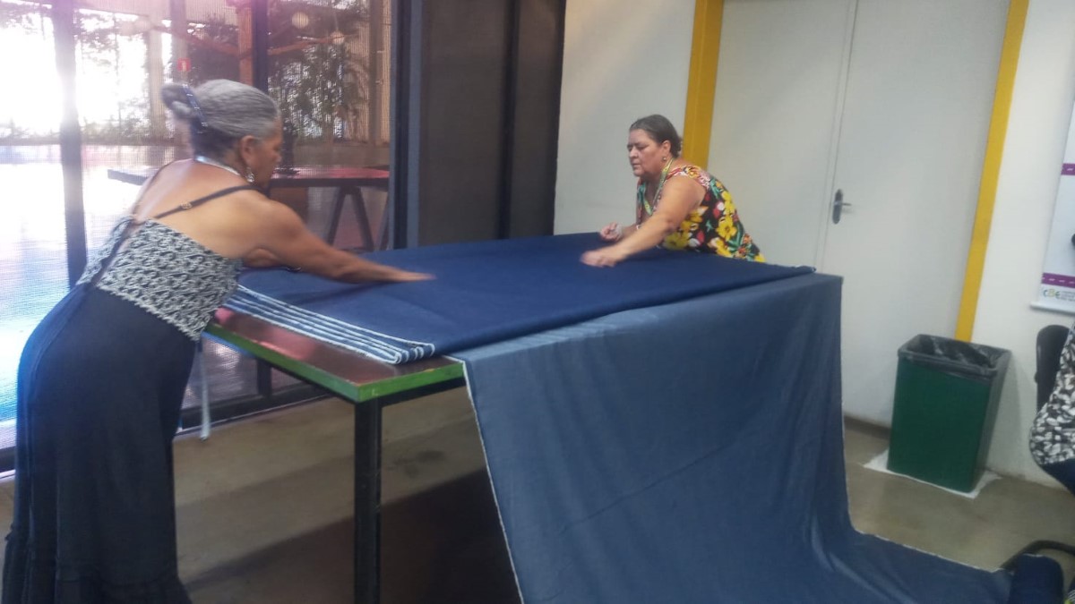 A célula colaborativa conta com 11 beneficiárias. E no momento elas estão recebendo a Capacitação no Ofício da Costura, que teve início em maio de 2025, as mesmas frequentam o espaço exclusivamente em dias de capacitação. Antes que acontecesse a capacitação, elas tiveram a oficina de Inteligência Emocional.