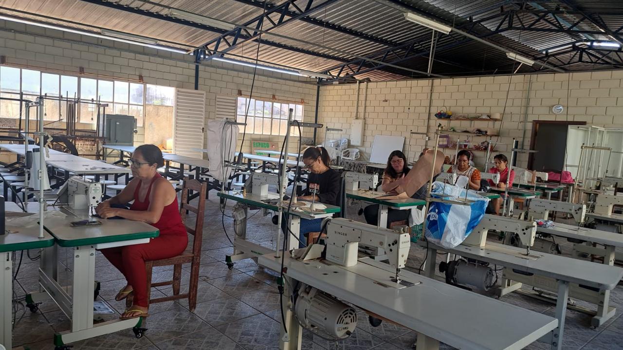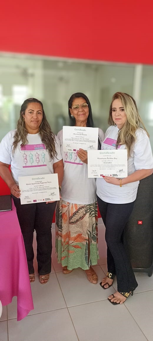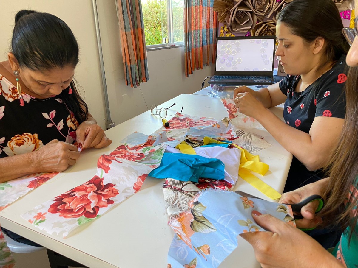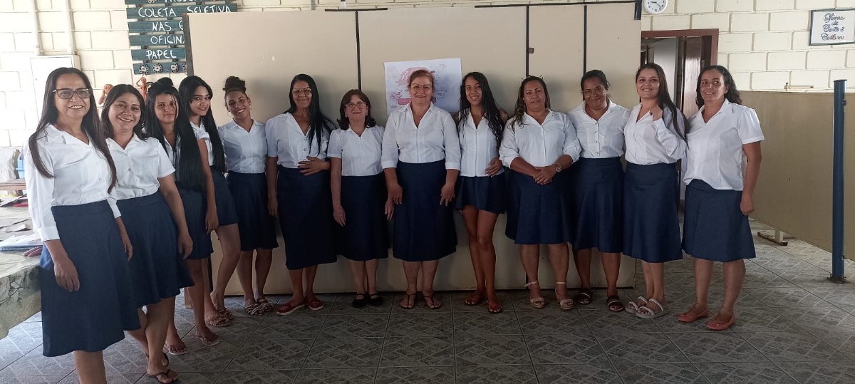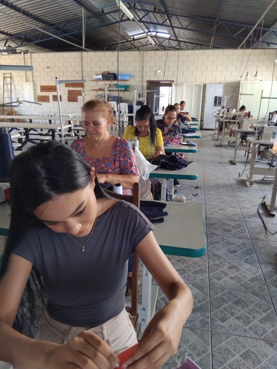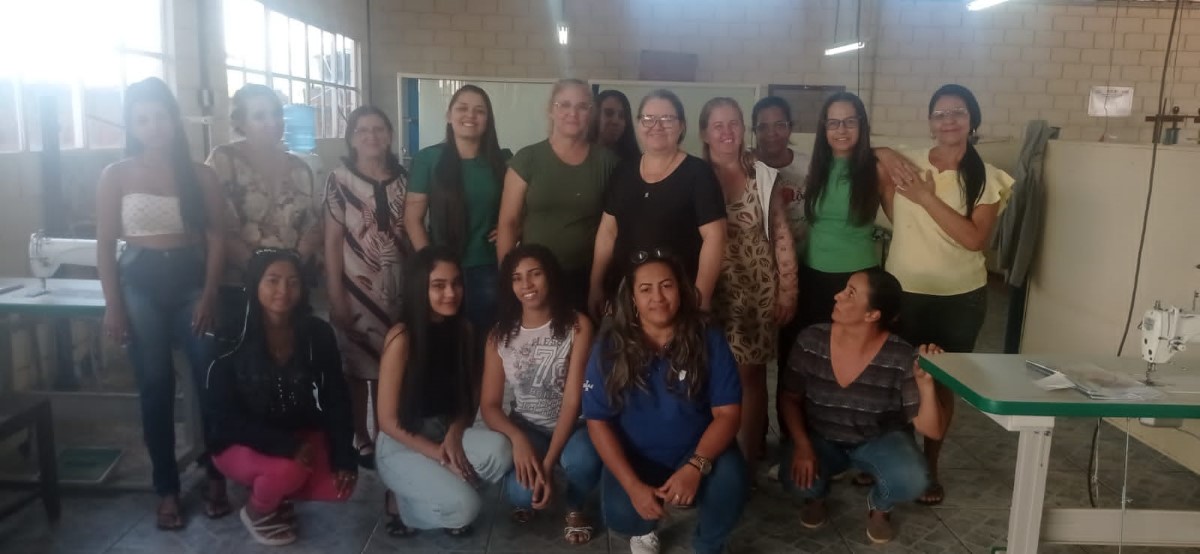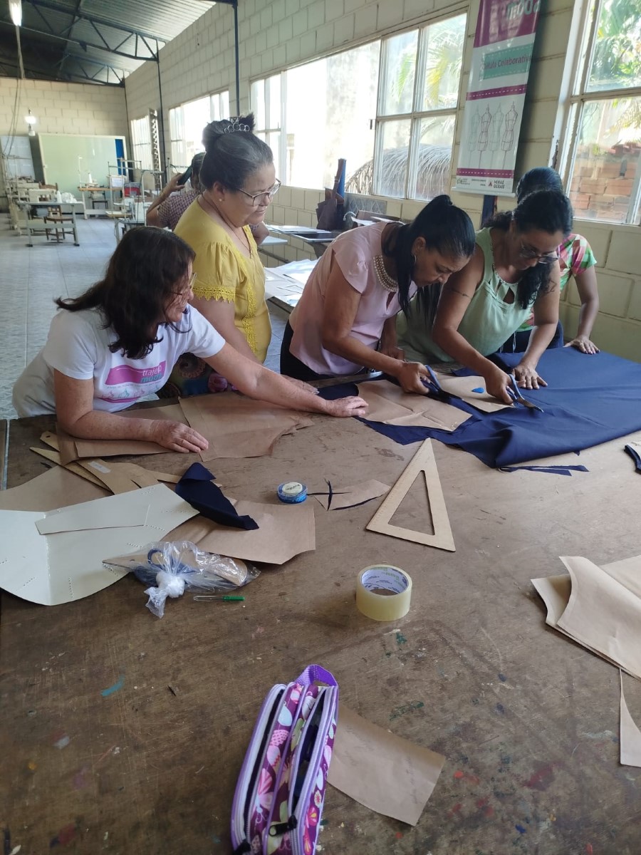 O segmento de moda escolhido pelas participantes é a confecção de uniformes, direcionando as capacitações para atender a um nicho de mercado com potencial demanda local. Apesar de a célula ainda não operar coletivamente em escala, as beneficiárias já aplicam os conhecimentos adquiridos em trabalhos individuais, como ajustes e pequenos serviços de costura. Essa prática inicial demonstra o engajamento do grupo e o desejo de gerar renda, mesmo em uma fase inicial de estruturação.