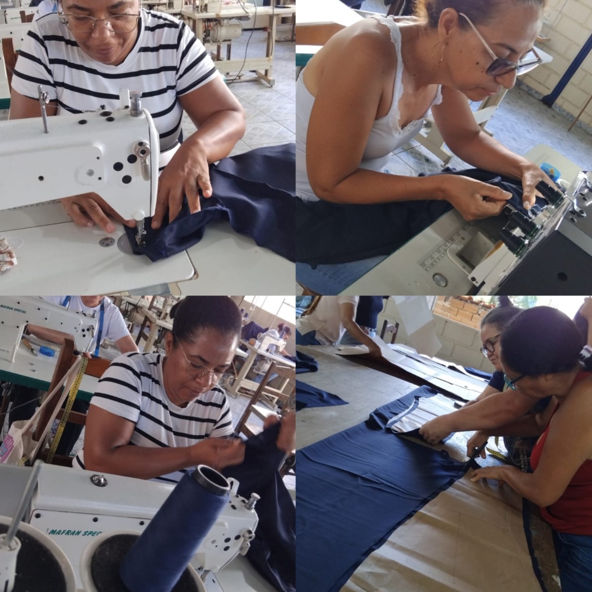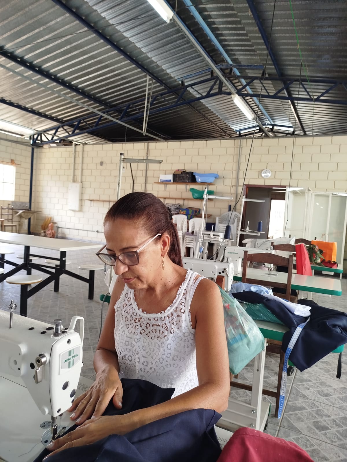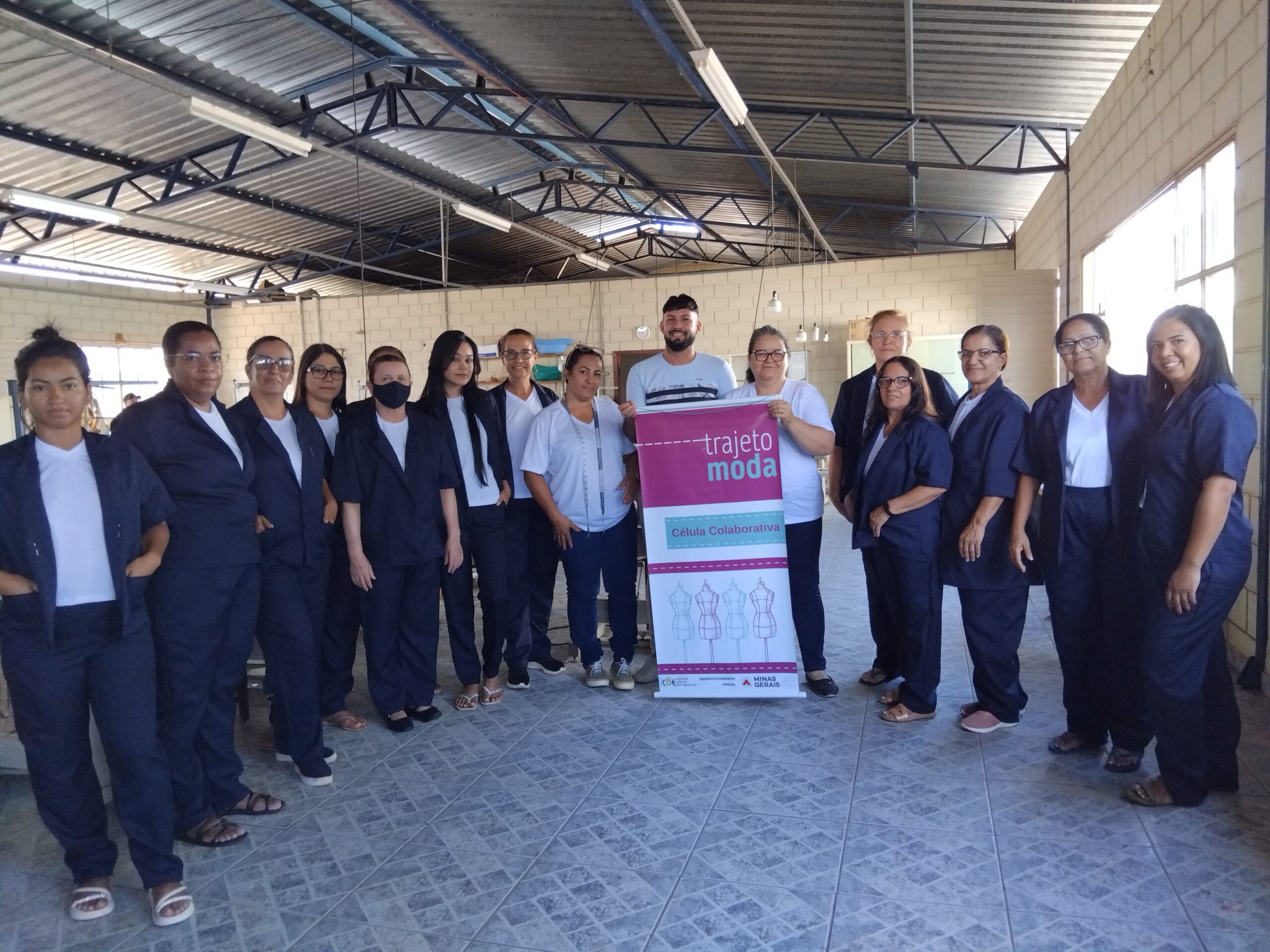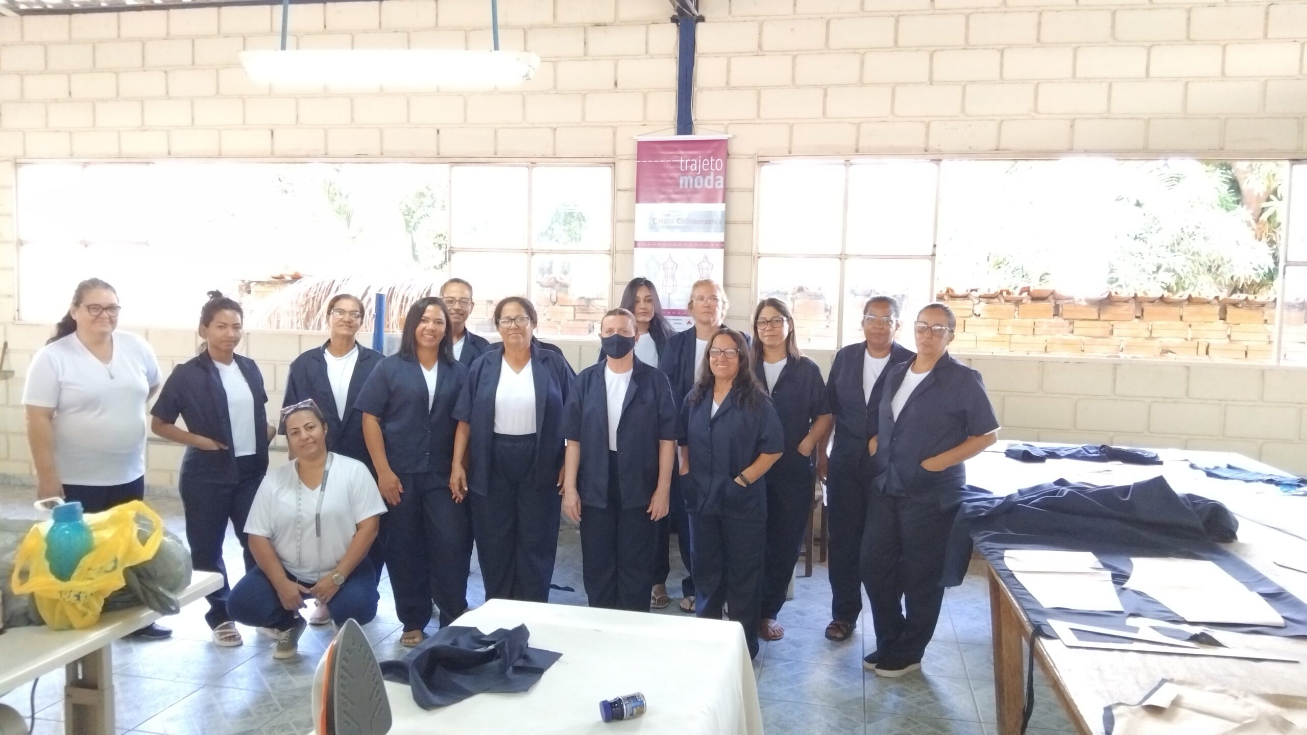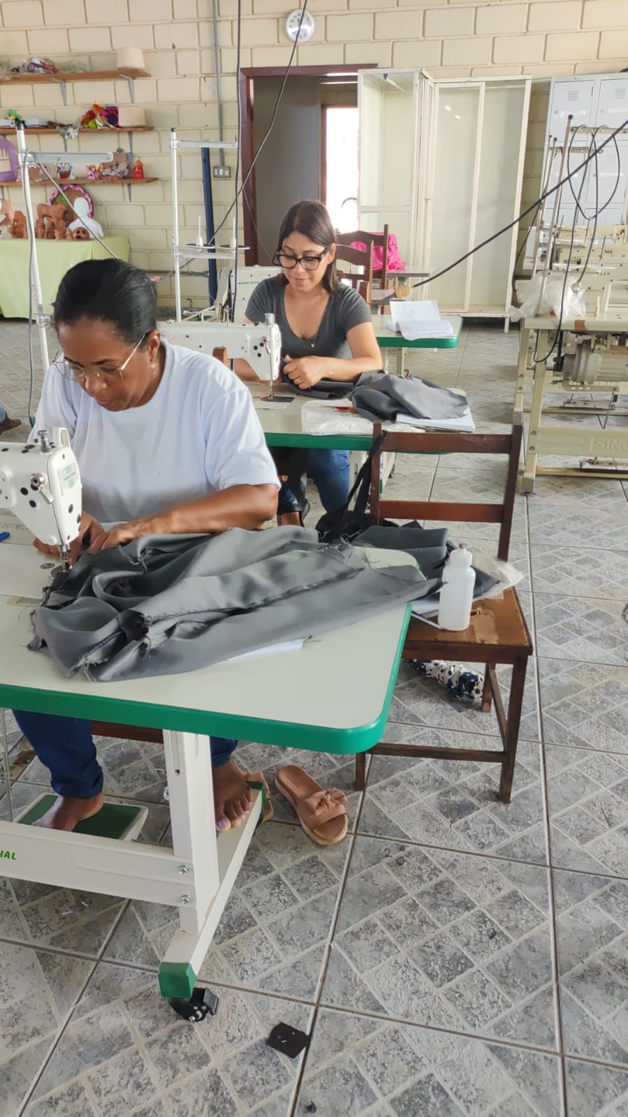 O segmento de moda escolhido pelas participantes é a confecção de uniformes, direcionando as capacitações para atender a um nicho de mercado com potencial demanda local. Apesar de a célula ainda não operar coletivamente em escala, as beneficiárias já aplicam os conhecimentos adquiridos em trabalhos individuais, como ajustes e pequenos serviços de costura. Essa prática inicial demonstra o engajamento do grupo e o desejo de gerar renda, mesmo em uma fase inicial de estruturação.