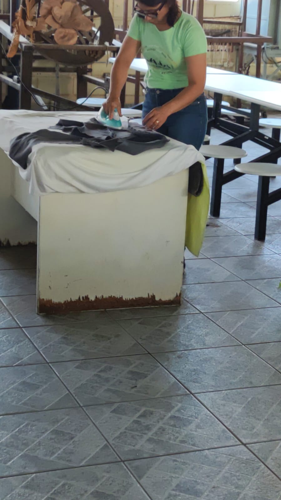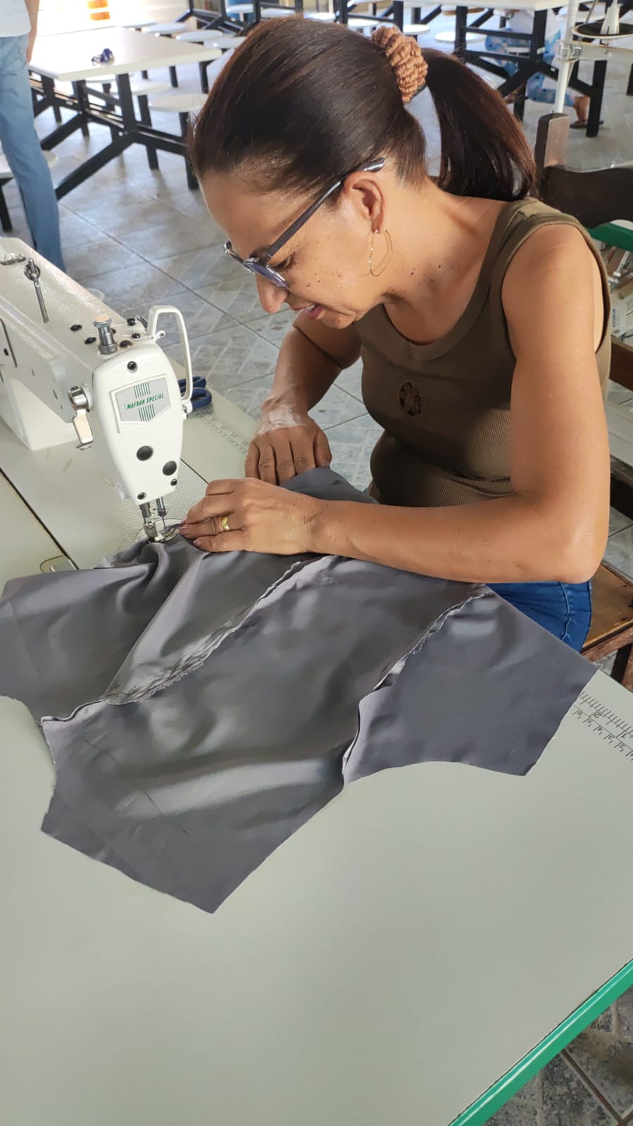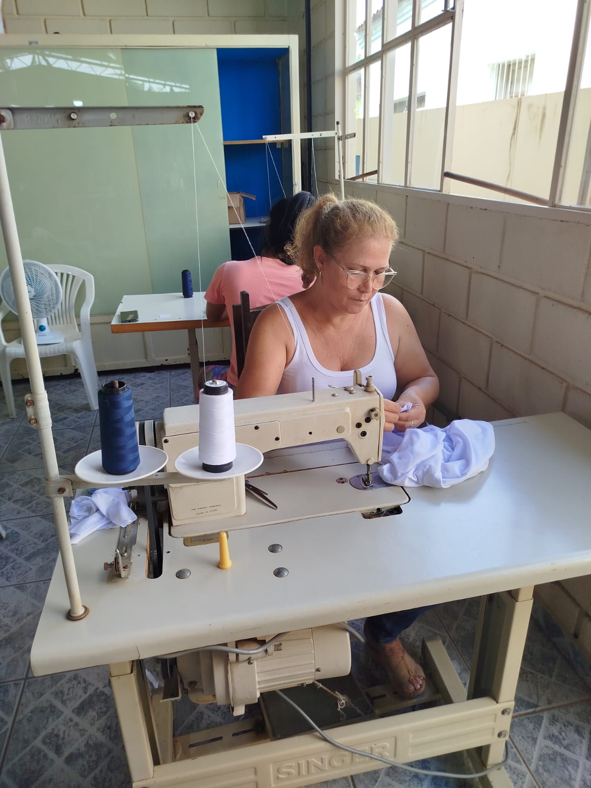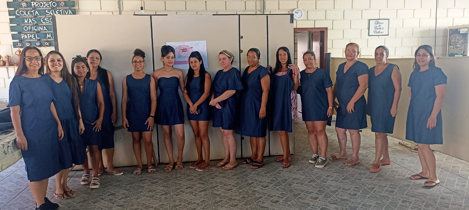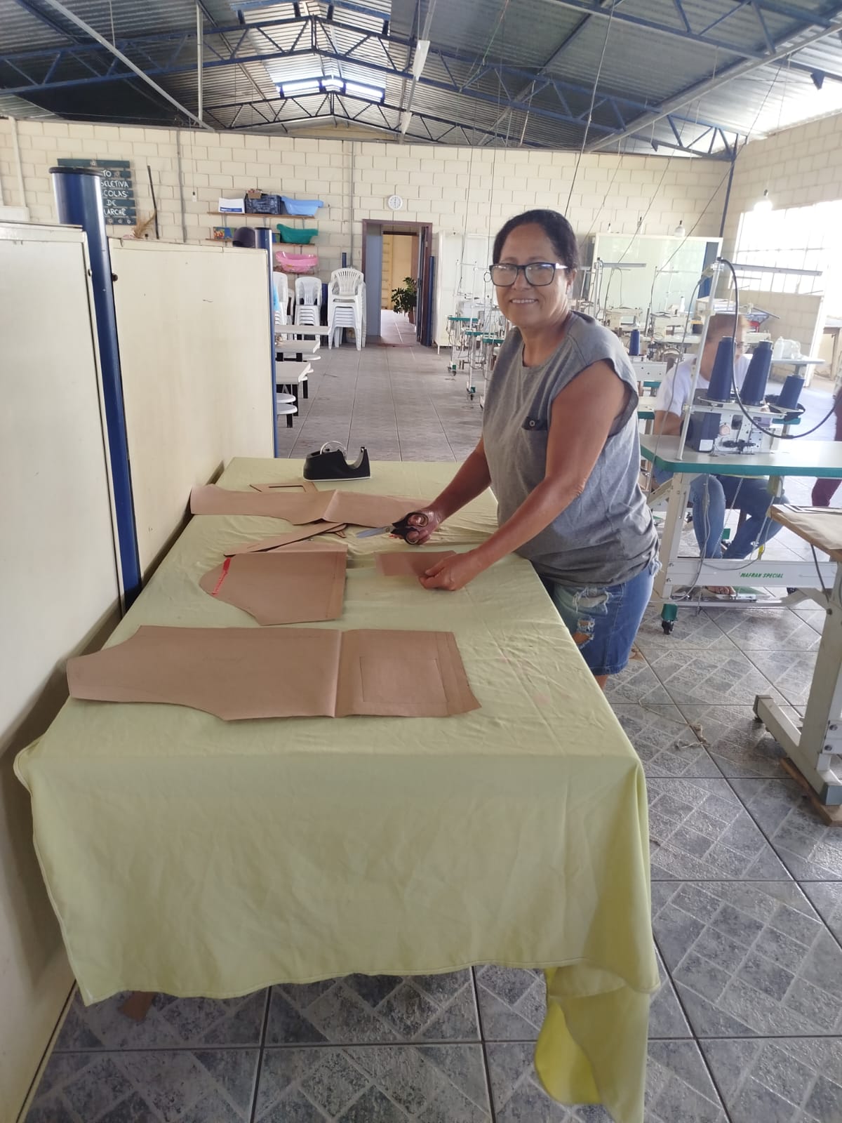 O segmento de moda escolhido pelas participantes é a confecção de uniformes, direcionando as capacitações para atender a um nicho de mercado com potencial demanda local. Apesar de a célula ainda não operar coletivamente em escala, as beneficiárias já aplicam os conhecimentos adquiridos em trabalhos individuais, como ajustes e pequenos serviços de costura. Essa prática inicial demonstra o engajamento do grupo e o desejo de gerar renda, mesmo em uma fase inicial de estruturação.