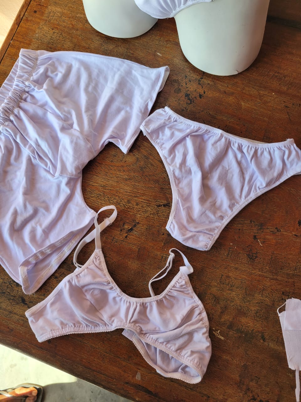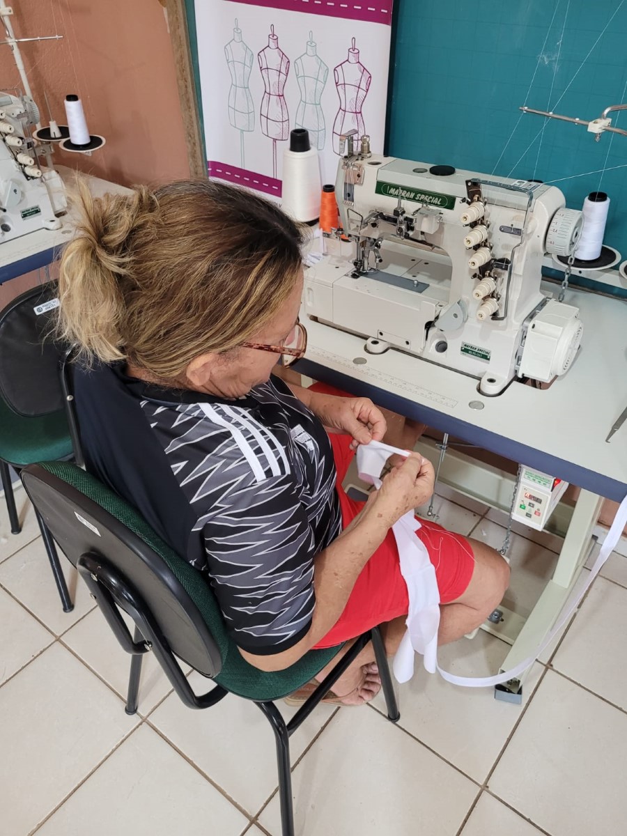 O segmento de moda escolhido pelas beneficiárias é a Moda Íntima, com foco na confecção de peças específicas e reparos. Embora o trabalho coletivo esteja em pausa, as participantes continuam atuando de forma independente, realizando produções e consertos por conta própria. Essa autonomia tem permitido que elas mantenham suas atividades e gerem renda individualmente, enquanto aguardam a reestruturação da célula.