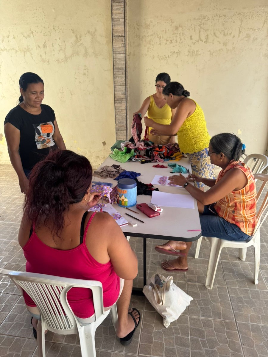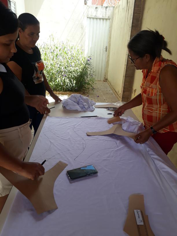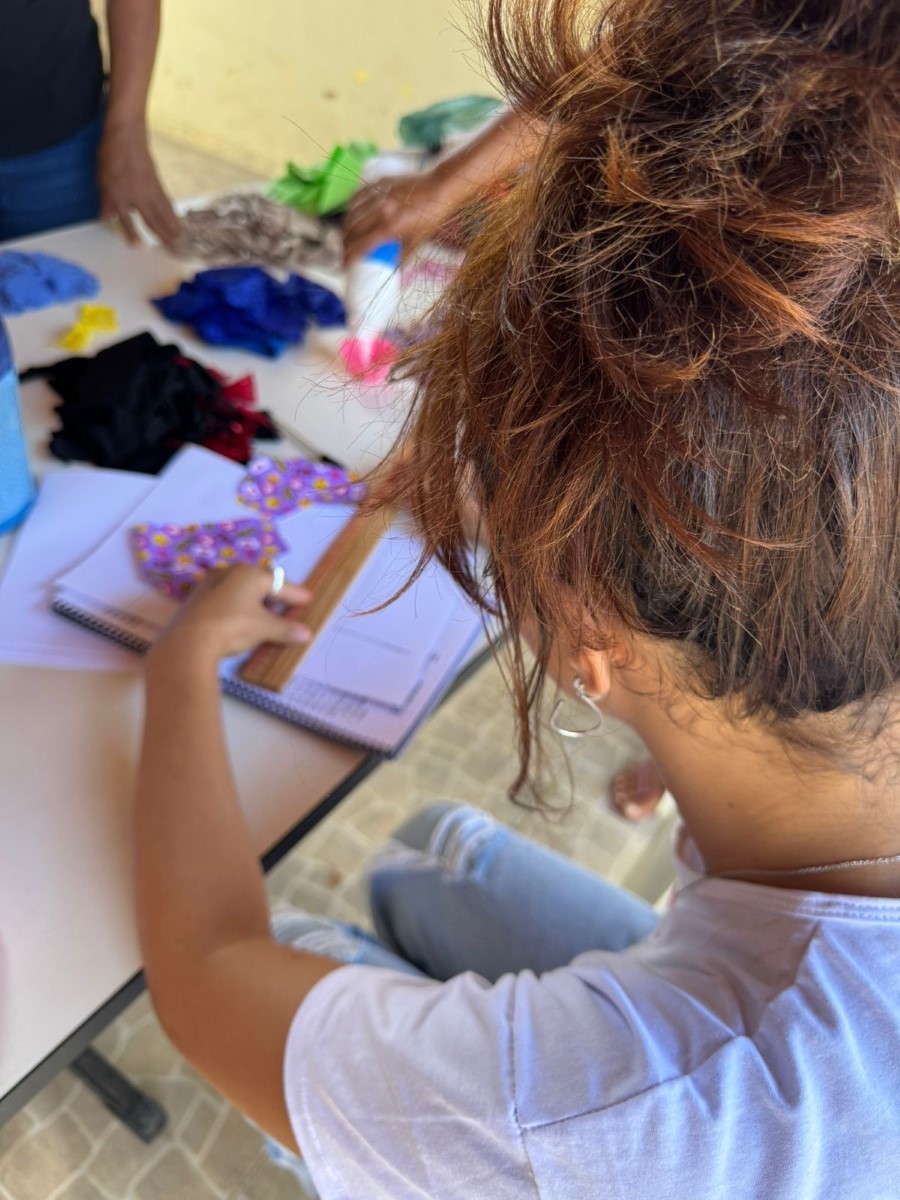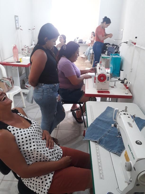 O segmento de moda escolhido pelas participantes é a Moda Íntima, com foco na produção de peças direcionadas a esse nicho. Uma das beneficiárias, que já possui experiência prévia na área, atua como referência técnica para o grupo, contribuindo de forma significativa para o fortalecimento da confiança e o aprimoramento das habilidades das demais integrantes.