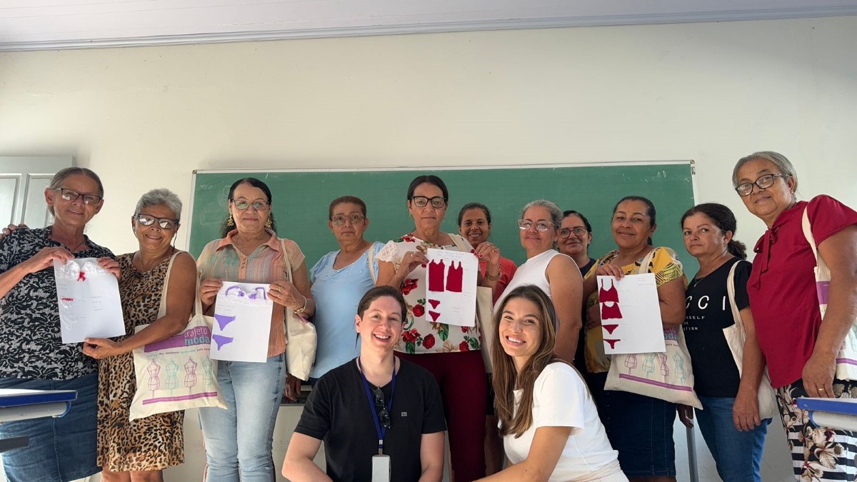 O segmento de moda escolhido pelas participantes é a Moda Íntima, mas, devido à necessidade de finalização da reforma do espaço e ao atraso na capacitação específica, algumas beneficiárias têm diversificado suas atividades. Atualmente, elas realizam reparos, confeccionam peças para consumo próprio e comercializam itens como jalecos e roupas em geral. Apesar dos desafios, o grupo demonstra resiliência e busca alternativas para gerar renda enquanto aguarda a conclusão das melhorias na célula.