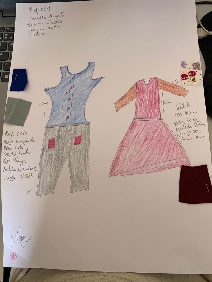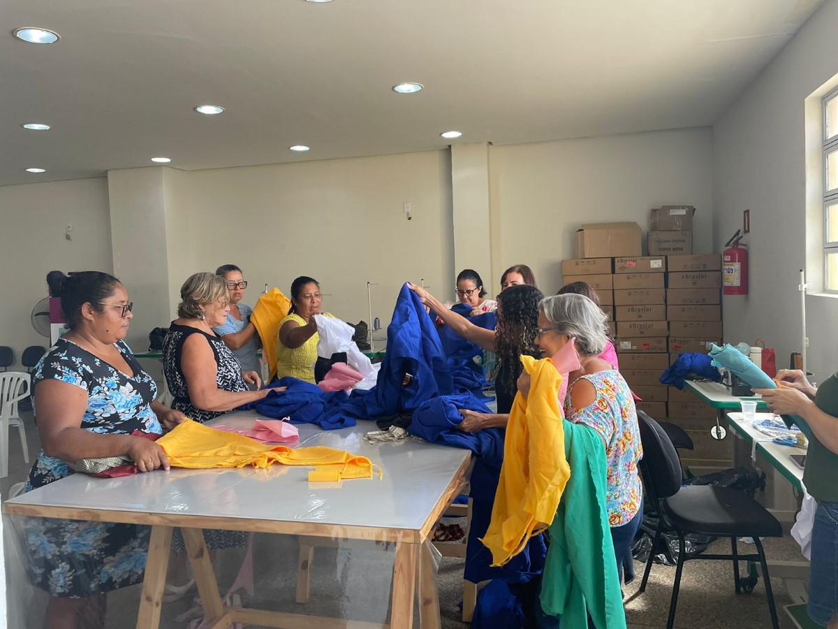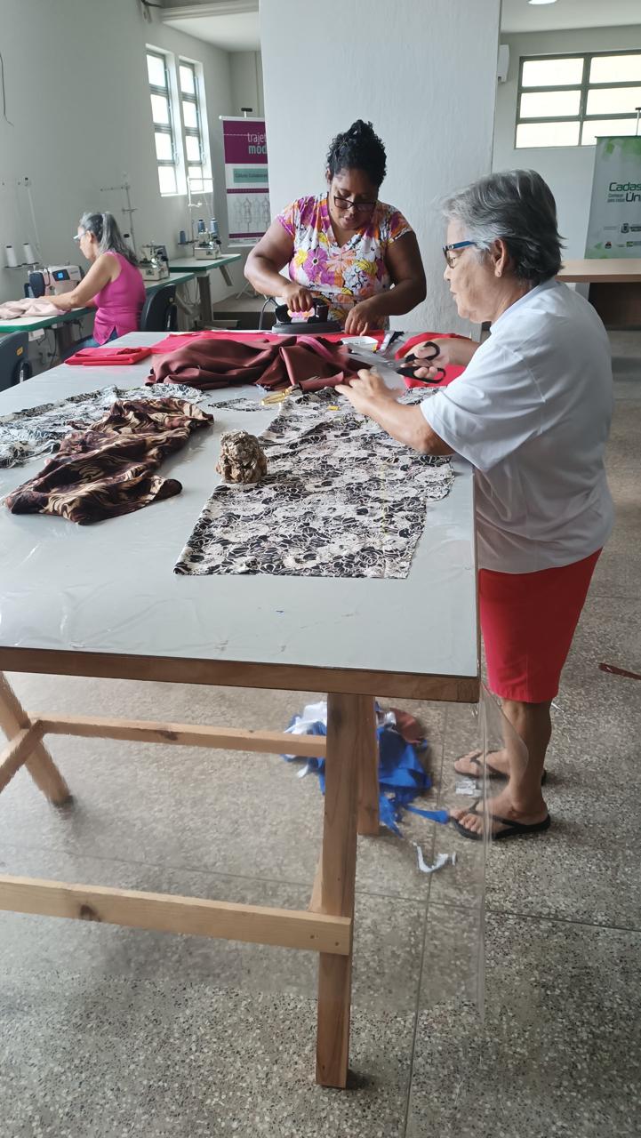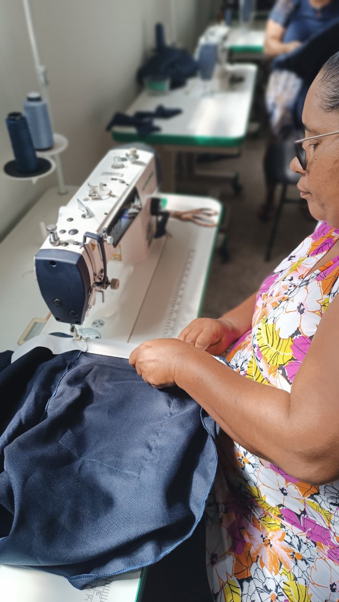 O segmento de moda escolhido pela célula é a Moda Corporativa, com foco na confecção de uniformes. Embora a comercialização ainda não esteja plenamente estruturada, o grupo já trabalha na organização da produção para atender futuras demandas. Algumas beneficiárias também geram renda individualmente, realizando pequenos reparos em roupas para a comunidade local, o que demonstra o potencial econômico do projeto.
