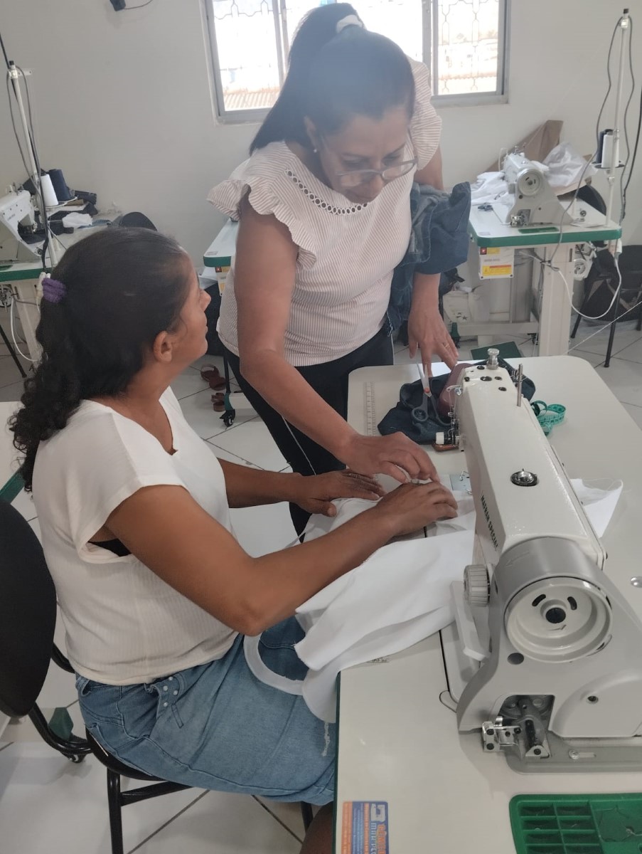 A célula colaborativa do Projeto Trajeto Moda em Ouro Verde de Minas/MG foi instalada na Rua Prefeito Álvaro de Freitas Araújo, nº 119, no Centro da cidade. Composta por 15 mulheres, a célula promove um ambiente de trabalho colaborativo, marcado pela união, motivação e companheirismo entre as participantes. Essa dinâmica tem sido essencial para o fortalecimento dos laços do grupo e para o desenvolvimento das atividades propostas.