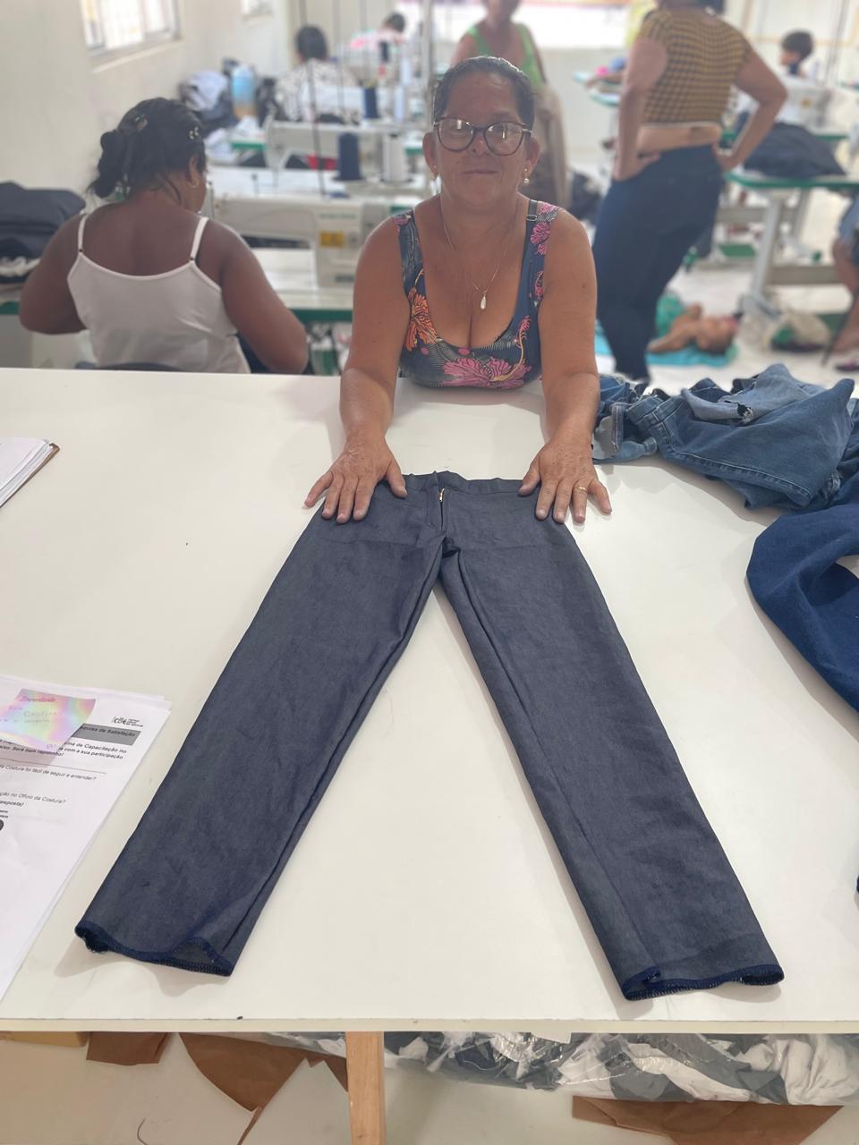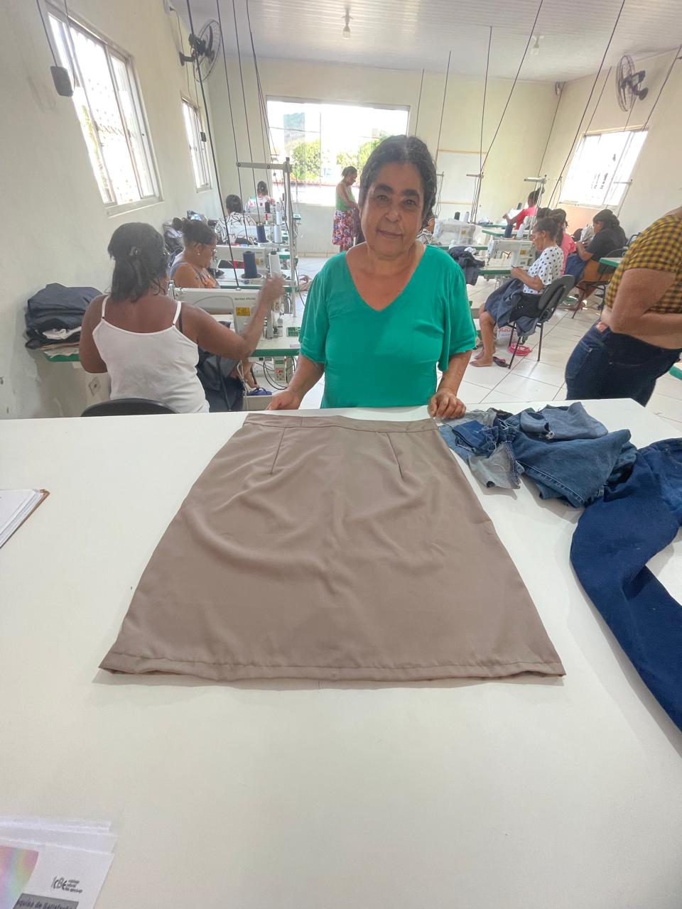 O segmento de moda escolhido pela célula é a Moda Corporativa, com foco na confecção de uniformes. Embora a comercialização formal ainda não tenha sido iniciada, as participantes já produzem roupas e acessórios de alta qualidade, demonstrando o potencial do grupo. Atualmente, as mulheres estão estruturando a célula para transformar a produção em um empreendimento sustentável, com a expectativa de iniciar a comercialização em breve.